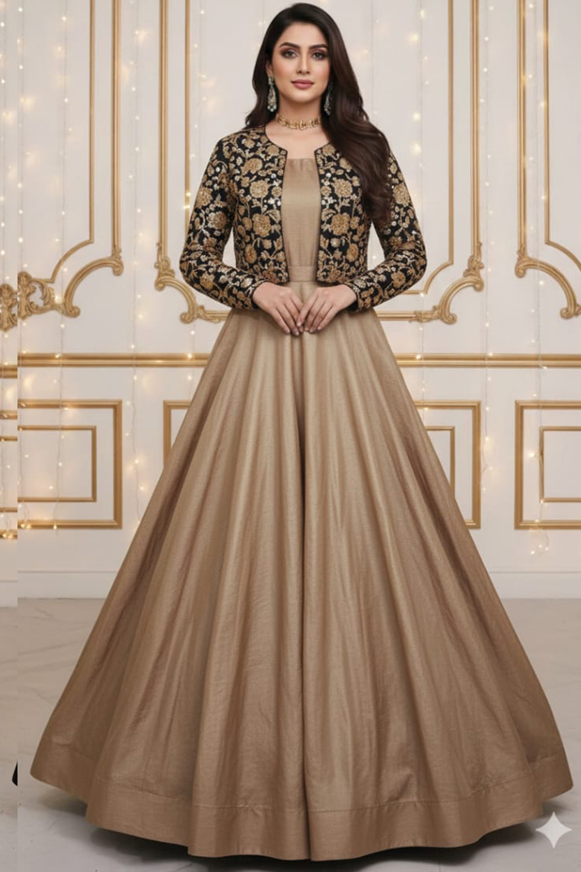 Embrace pure sophistication with this stunning Skin and Black Embroidered Maxi, designed for women who love refined style and graceful silhouettes. Crafted from delicate silk fabric, this maxi dress features intricate embroidery that adds texture, elegance, and a luxurious finish to your look.